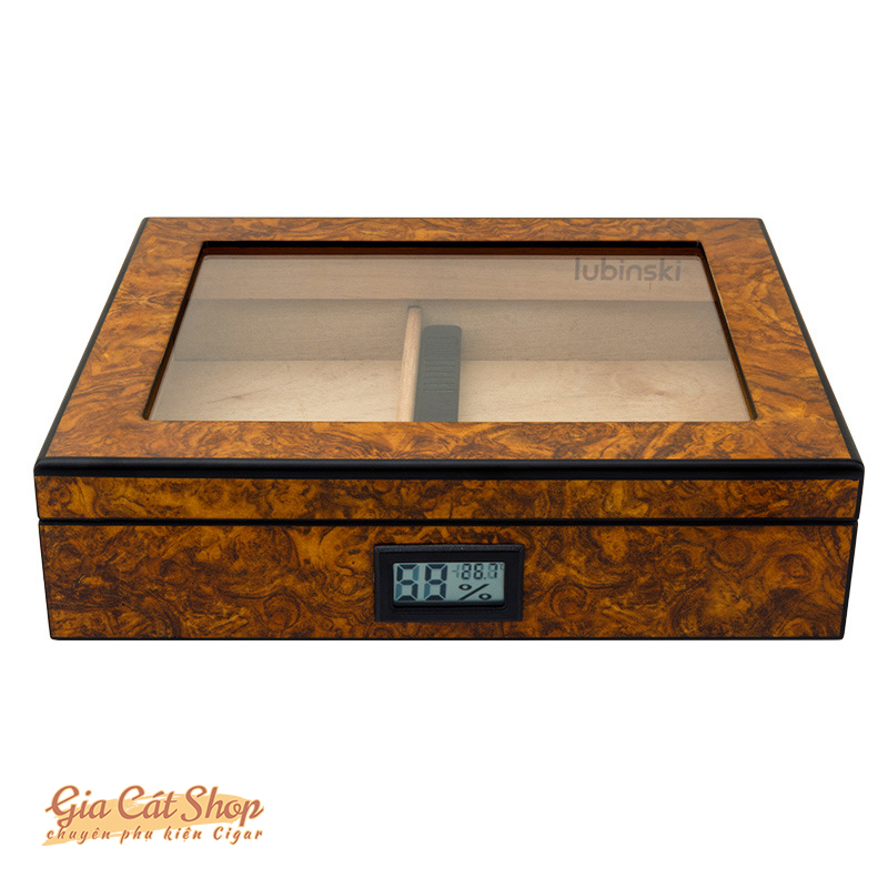 Có sức chứa 20 điếu, hộp ủ cigar Lubinski hướng đến sự tiện dụng, gọn nhẹ có thể mang đi đặt ở nhiều nơi: đặt ở phòng làm việc, đặt ở oto hay có thể mang đi công tác, nó đẹp gọn gàng thiết kế tiện dụng. Bên ngoài được véc ly vân gỗ cầu kỳ mặt kính nhìn rất sang trọng, tủ được làm bằng gỗ tuyết tùng loại gỗ chuyên dụng cho các loại tủ, hộp bảo quản chứa cigar. (Sơ qua về gỗ tuyết tùng thì đây là loại gỗ sinh ra là dành cho bảo quản cigar – nó ko có nhiều tạp mùi, hấp thụ ẩm và lưu giữ ẩm tốt, hấp thụ ẩm những ko biến dạng cong vênh)